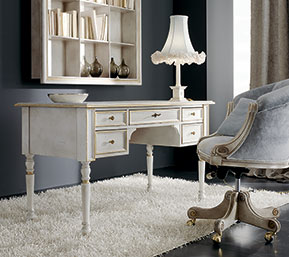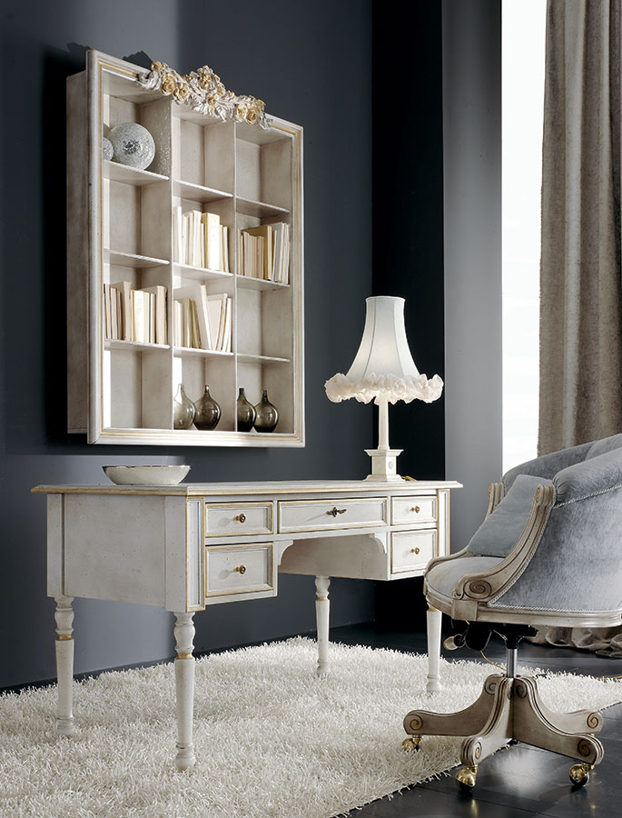 Eleganza formale per l’ufficio firmato Volpi nella finitura anticata. Le forme sinuose, abbondanti, disegnano lo stile degli arredi con abbinamenti che li rendono veri e propri objets d’art.